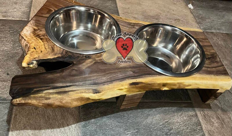 We offer a wide variety of elevated feeders available for purchase, featuring popular designs that customers frequently seek. These feeders are crafted from different materials, including standard lumber and live edge wood. You can choose from various styles, whether you prefer single or multi-bowl configurations. Additionally, we provide feeders equipped with food storage options and convenient shelving. This ensures that you not only have a functional feeding solution but also an organized space for your pet's supplies.